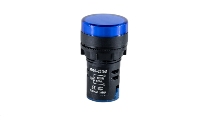 - 22mm Blue 240VAC/DC LED Pilot Light