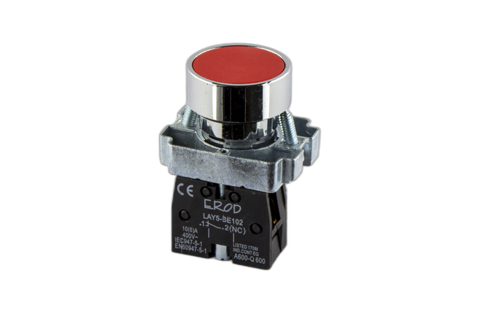 22mm Push Button Red With Metal Surround 1 N/C