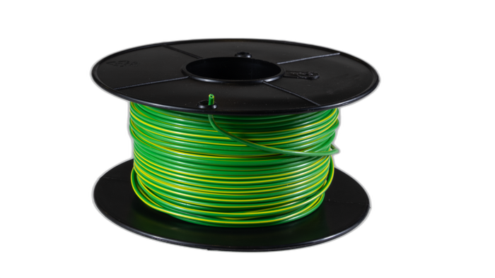 - 0.75mm2 0.6/1Kv V90HT PVC S Core Flex 100m Gn/Yell