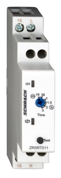 Schrack Amparo Din Rail Mounted Emergency-light-test-relay 230V, modular version. Switching Capacity 16A 250V AC, start up peak 80A