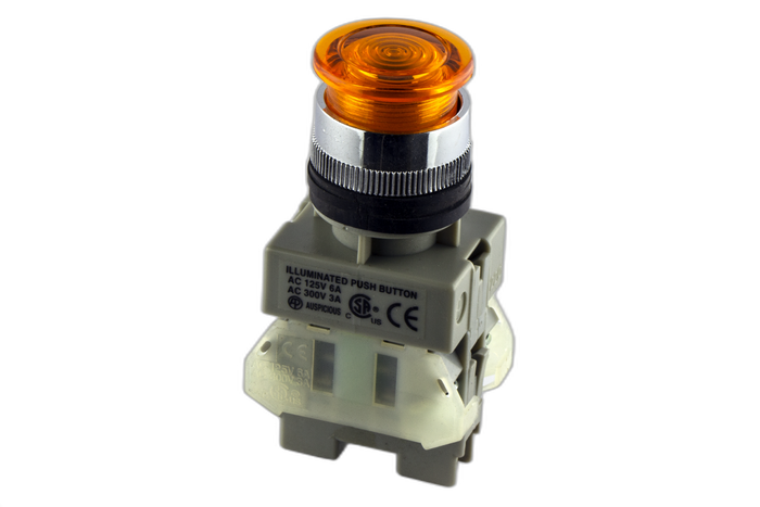 - 22mm Illuminated Push Button Yellow 1 N/O & 1 N/C